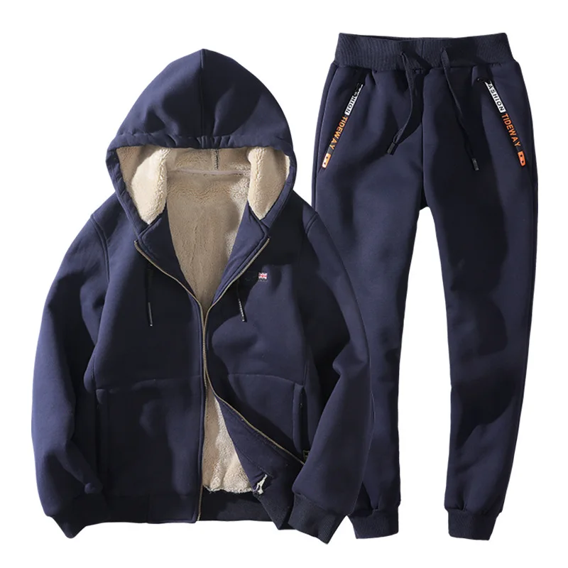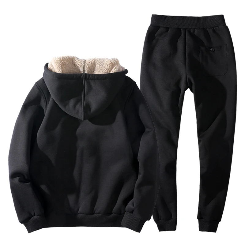 2019 Fashion Winter Men Sweat Suit Hoodies Jacket+Pants Cashmere Thick Sportswear Two Piece Set Fle